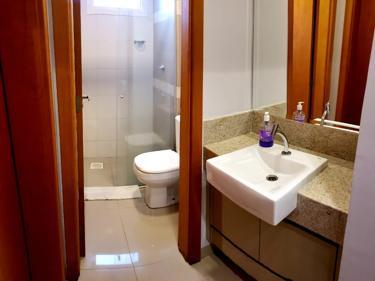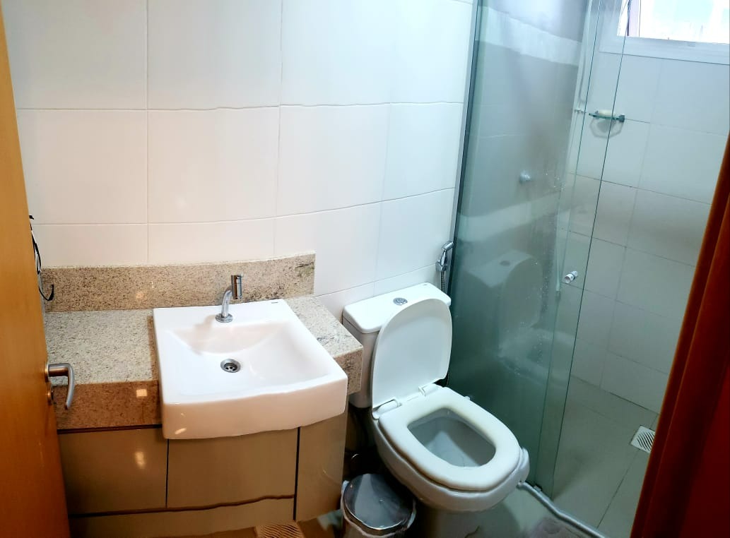 - BANHEIRO COM BOX EM VIDRO E ARMÁRIO;