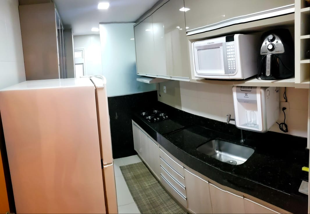 - COZINHA COM ARMÁRIOS EMBUTIDOS, GELADEIRA, FOGÃO, MICRO-ONDAS E BEBEDOURO;
